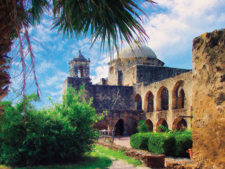 Photo-illustration of San Jose Mission in San Antonio, Texas